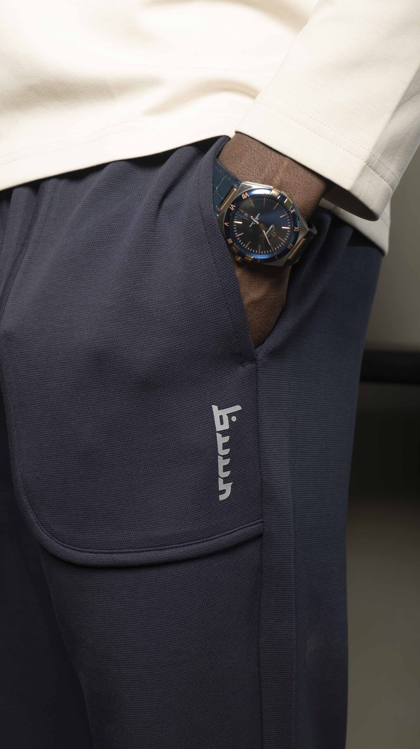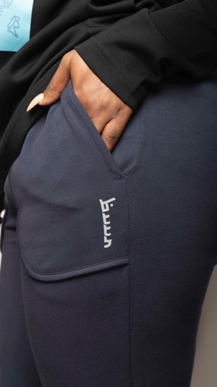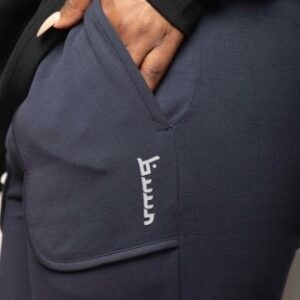 BuuR navy blue joggers, featuring our signature BuuR print. These joggers are designed to seamlessly transition from day to nightwear, offering both comfort and style. Crafted with our special blend of materials, including 55% Cotton, 44% Polyester and 6% Spandex.